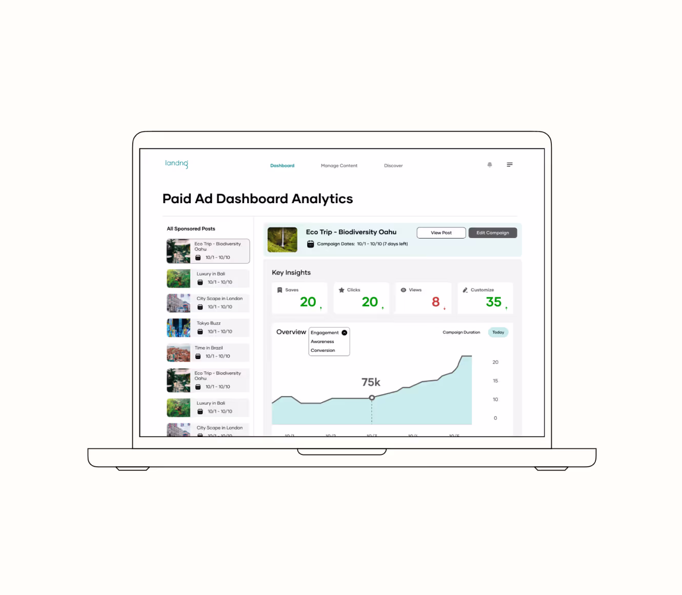 Landng is a social platform that helps travel brands land and measure high-impact influencer collaborations